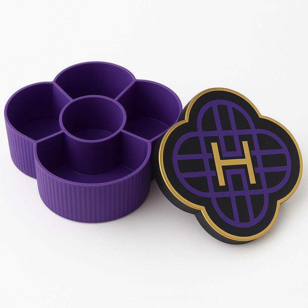 Uma caixa multiuso com design moderno e formato de flor, perfeita para guardar pequenos objetos, acessórios ou doces com muito estilo.