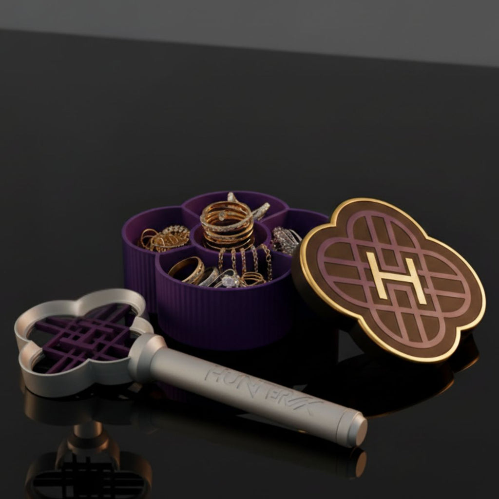 Descubra o Kit Huntrix, a combinação perfeita de estilo e funcionalidade. Este kit inclui uma elegante caixa de joia e o exclusivo bastão Huntrix, ambos produzidos em PLA, um material durável, leve e ecológico. Ideal para organizar e proteger seus acessórios com sofisticação, este conjunto une beleza, qualidade e sustentabilidade em um único produto.