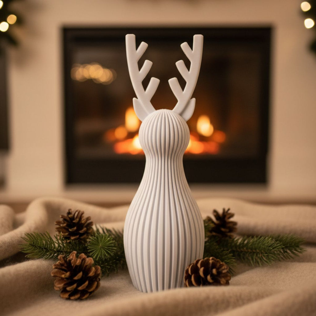 Design: Formato de rena estilizada, com acabamento clean e decorativo