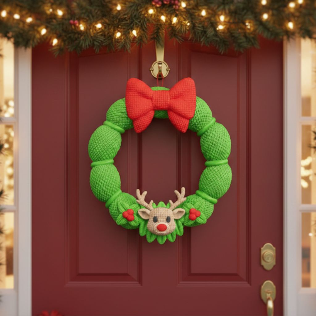 Descrição do Produto – Guirlanda Natalina em PLA com Rena e Laço Vermelho